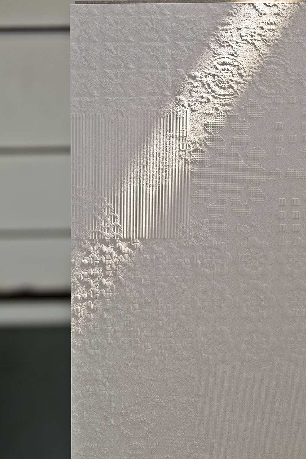 Ronan & Erwan BouroullecPunto presents a really bold pattern that finds its maximum expression when used on large walls. Light plays a central role when it meets the elevated and sunken dots on the surface of the elements."