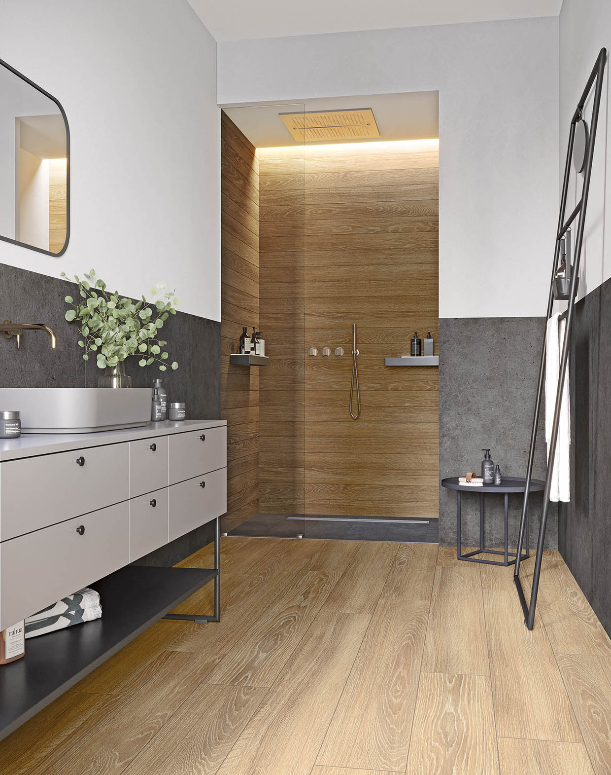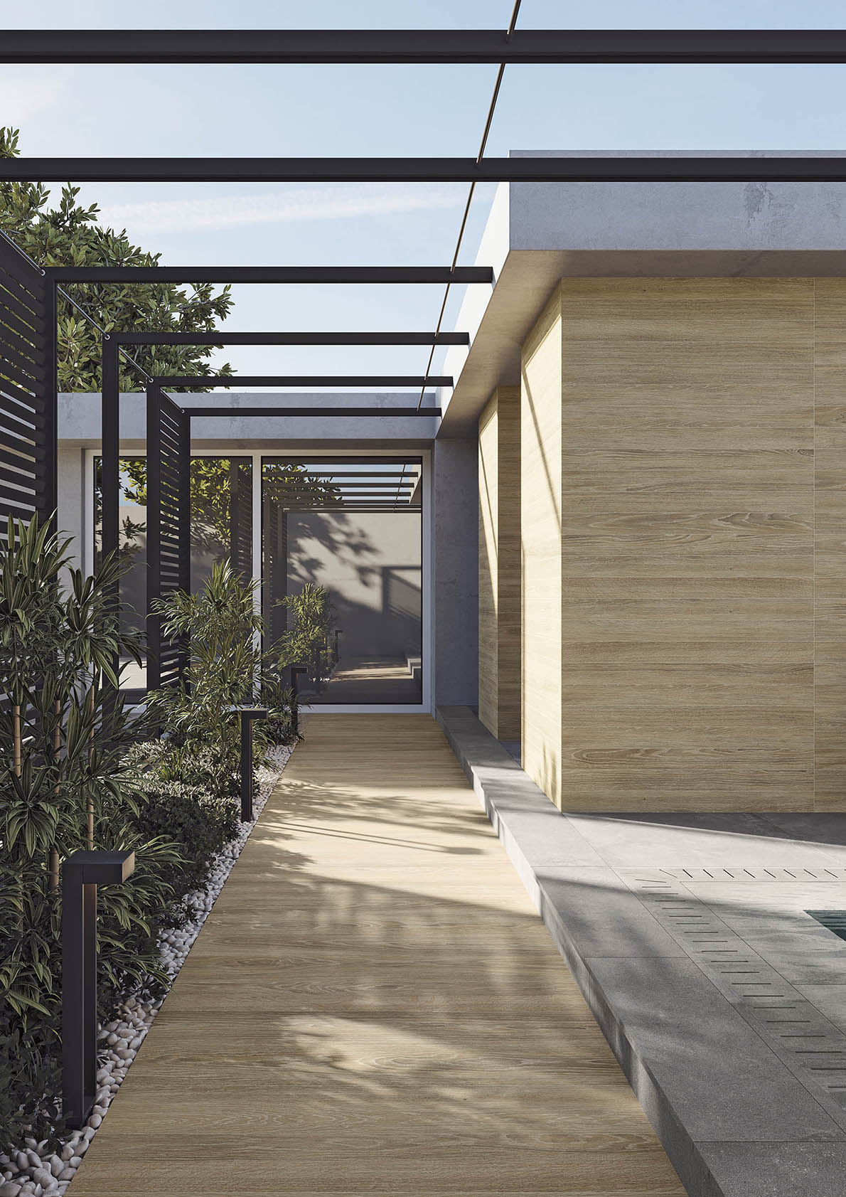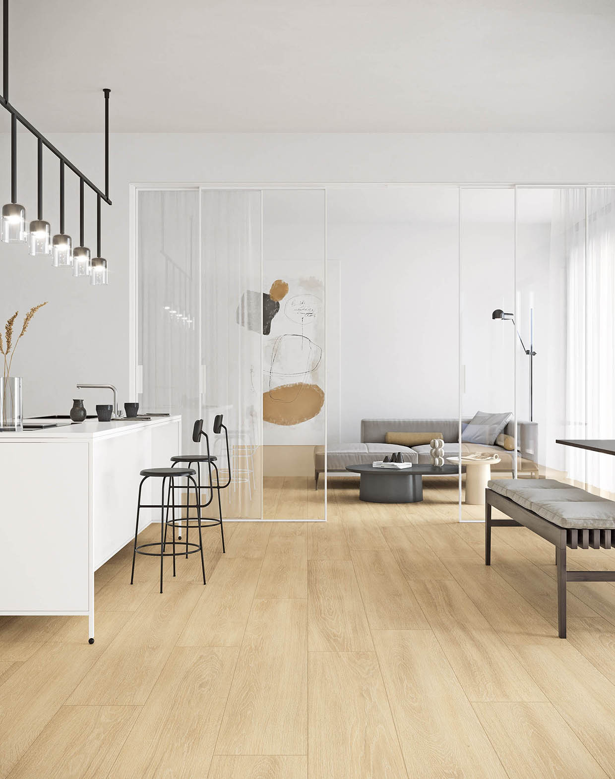 Ridgeline replicates the appearance of wooden oak on large-format, highly durable porcelain tiles. Featuring a range of muted tones that complement natural textures, Ridgeline aligns seamlessly with modern aesthetics, highlighting both beauty and functionality.