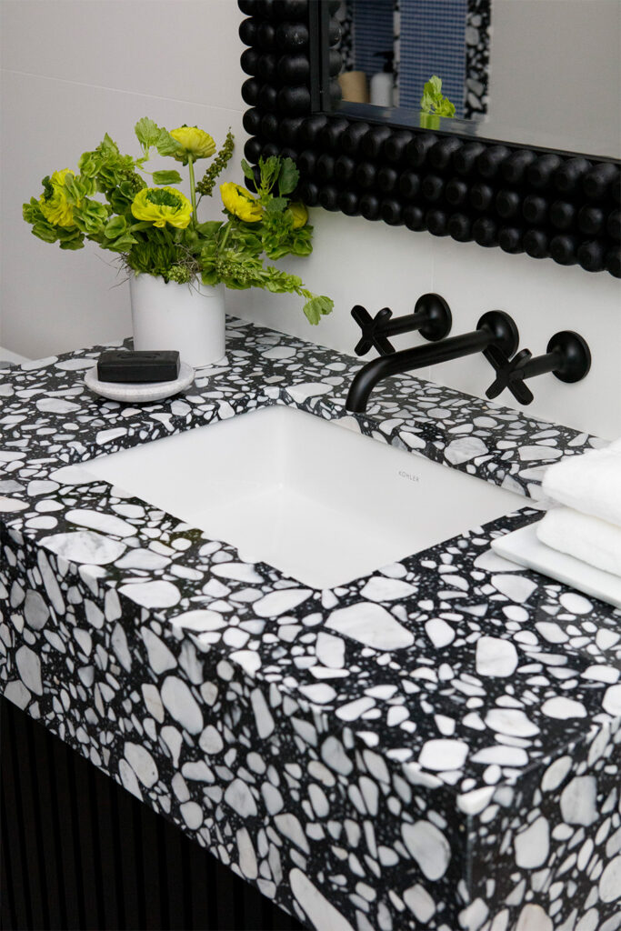 A: What initially drew us to Opustone was the elevated, almost gallery-like experience of their showroom. It didn’t feel like a typical stone warehouse – it felt curated, inspiring, and truly high-end. The unique selection of slabs, many of which we hadn’t seen anywhere else, immediately caught our eye. Each visit feels like a treasure hunt, where we discover statement-making materials that align perfectly with the layered, intentional style we bring to our projects.