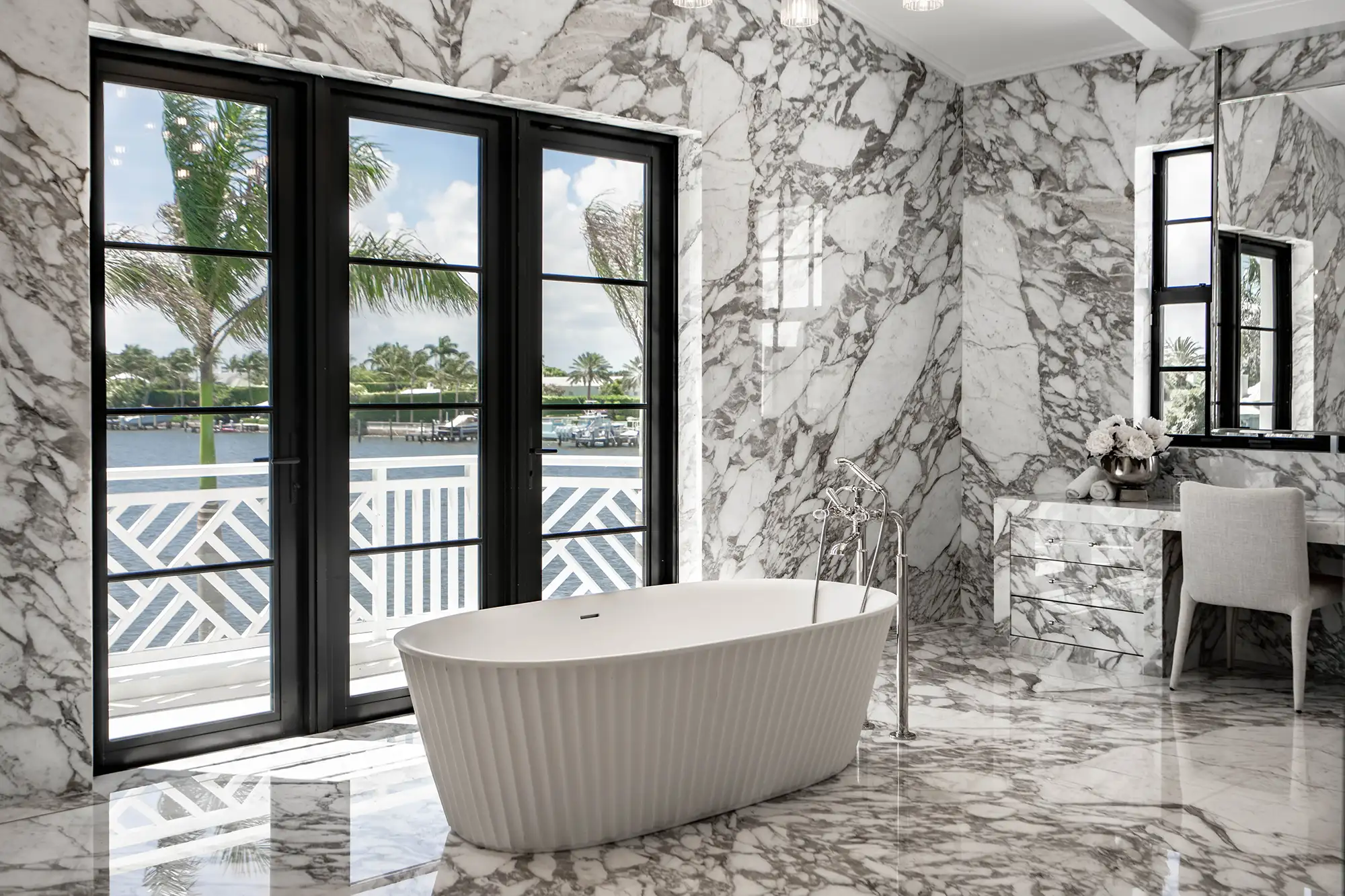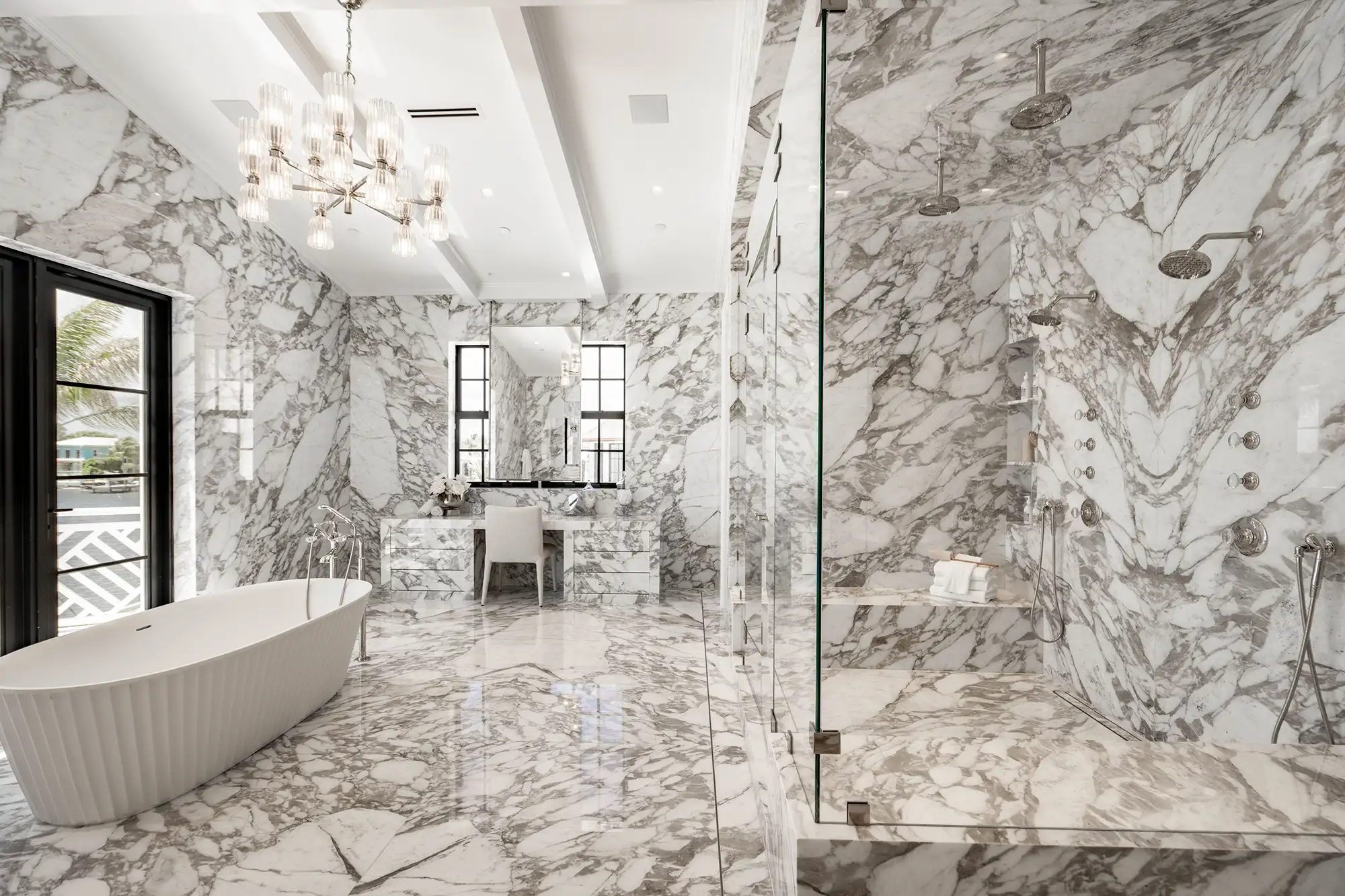 Todd Michael Glaser’s Tarpon Isle estate redefines Florida luxury real estate. This one of a kind modern masterpiece, priced at $218 million, showcases the elegance of Opustone’s finest marbles including Calacatta Gold L, Calacatta Azul, and Carrara Extra. Every detail, from the grand master bathroom to the stunning pool deck, reflects Glaser’s vision of timeless sophistication and artistry in stone.