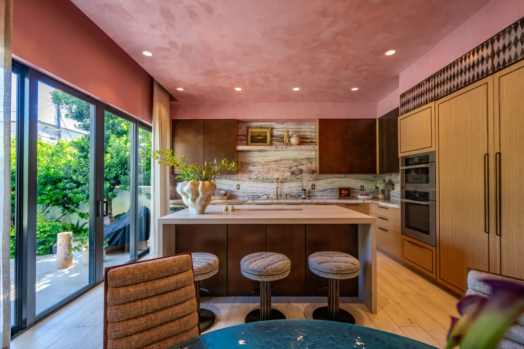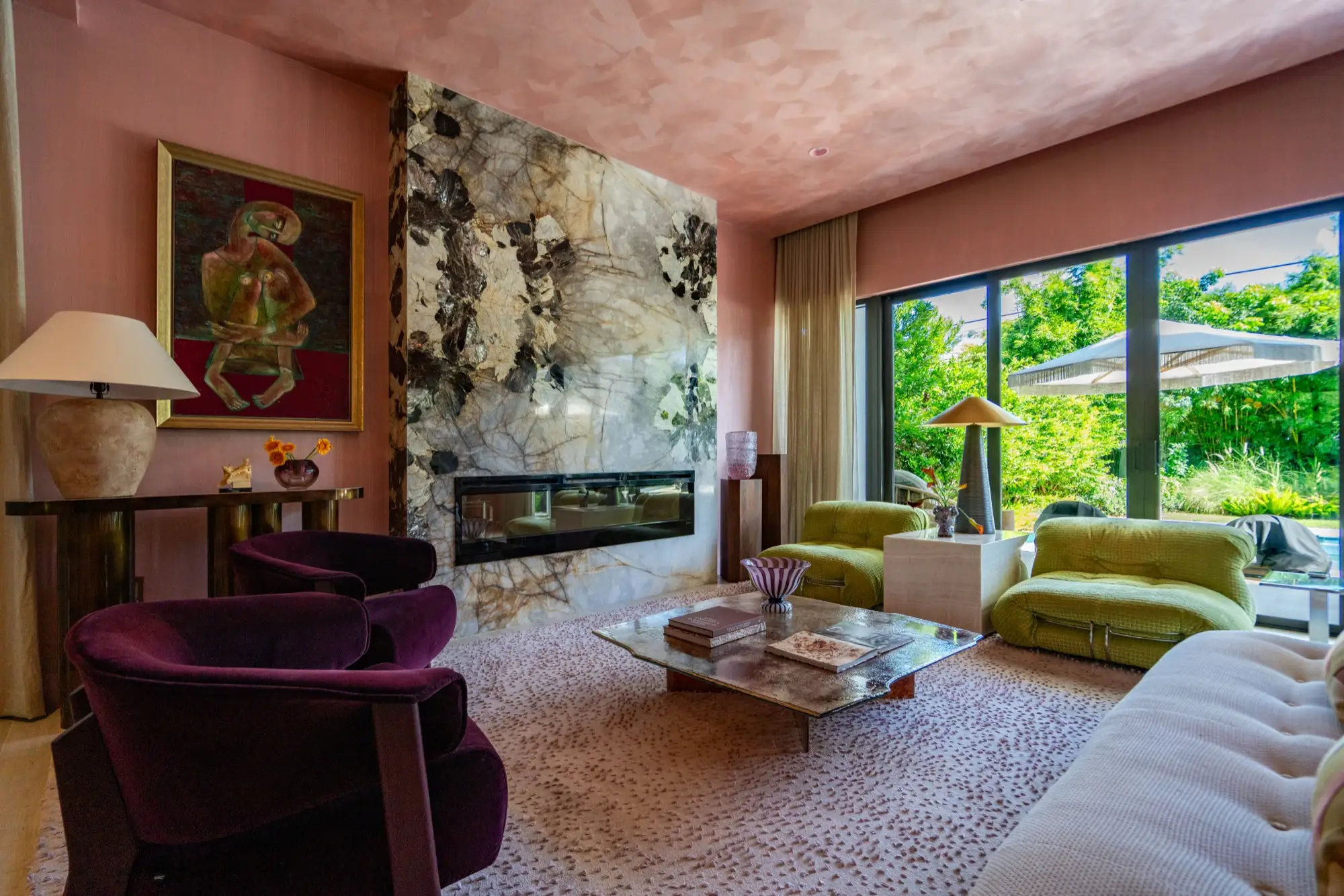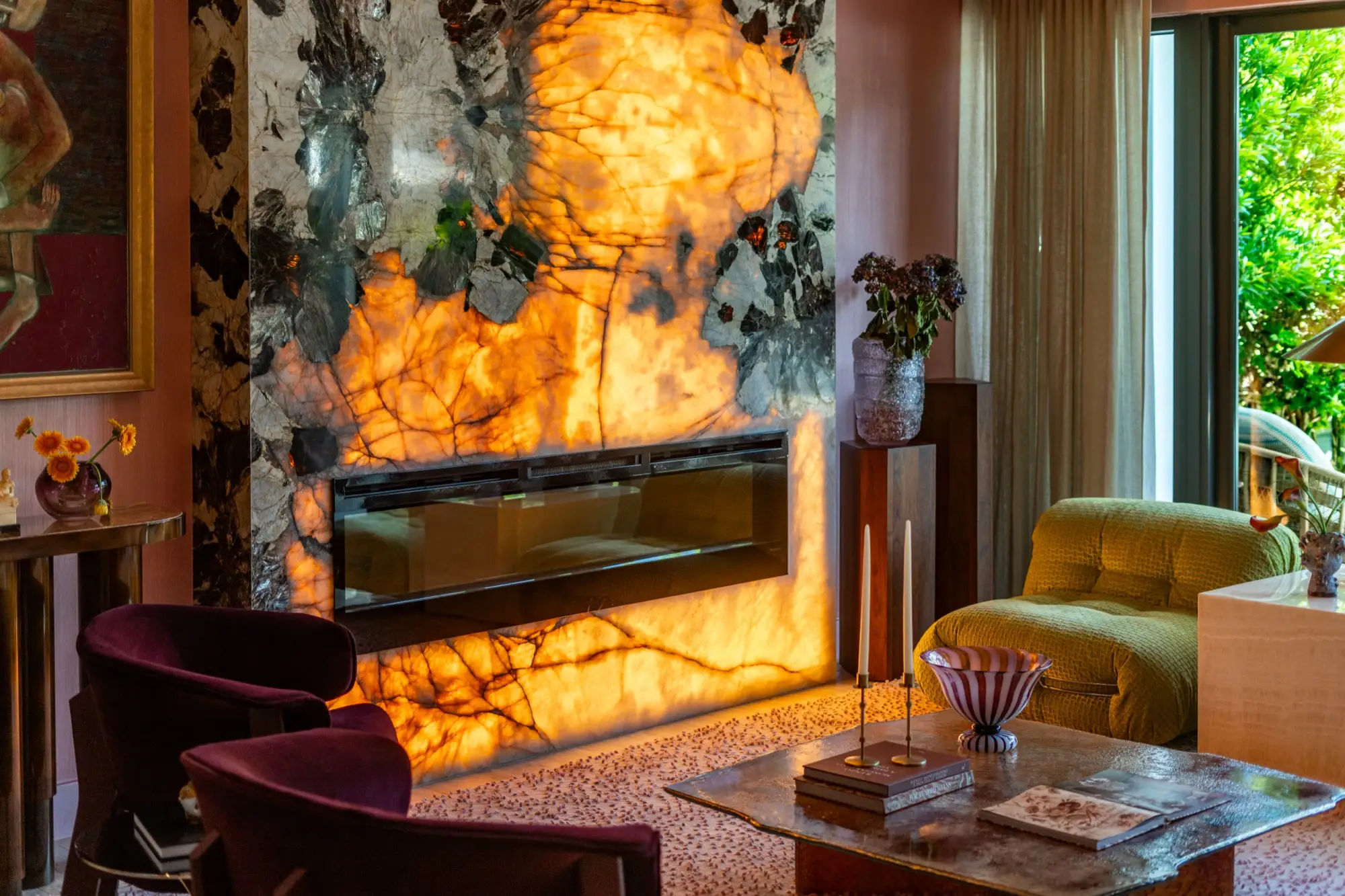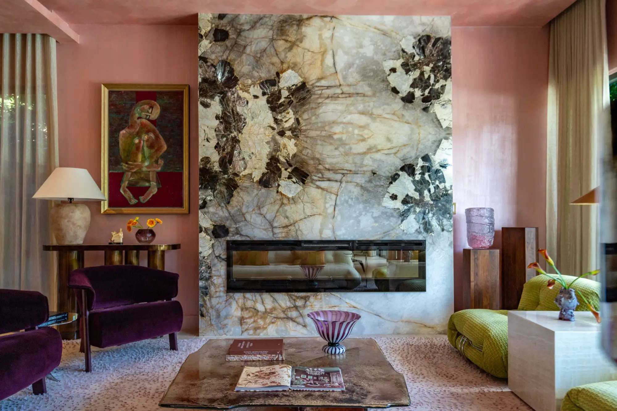 Designer and celebrity chef Travis London’s Miami home is a bow to balanced maximalism. With material selected from our collection, he carefully crafted a design that flows with the veins, hues, and shadows of its natural materials. A counterpoint to restrained design, a rebellious departure from simple white marbles and beige quartzites, his project redefines how natural surfaces integrate into the complexity of interior design. In a celebration of color, texture, and nature, Travis London’s home demonstrates how bold stone can live as the heart of a design, an integral part of a greater organism, working holistically with surrounding elements to bring spaces to life.