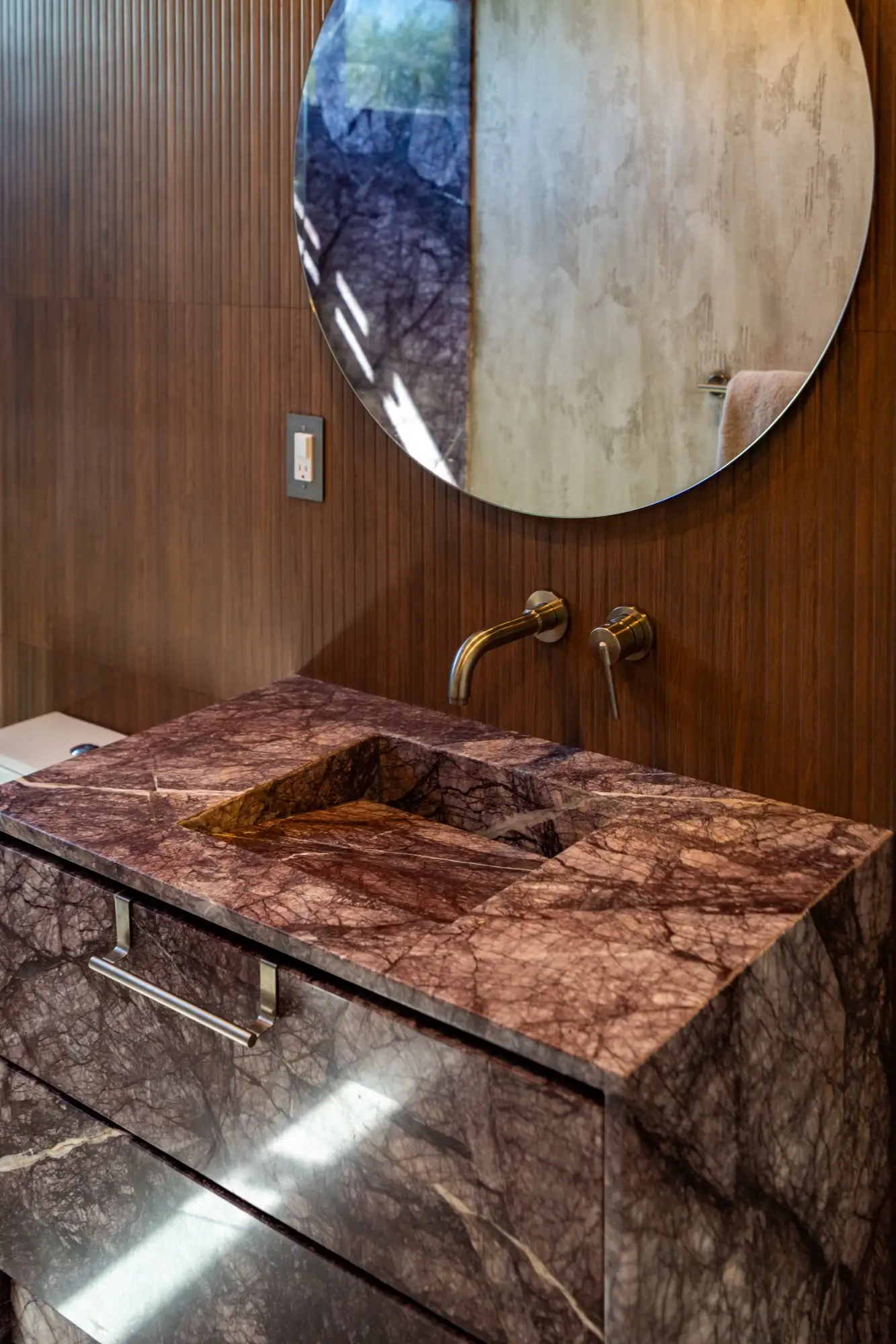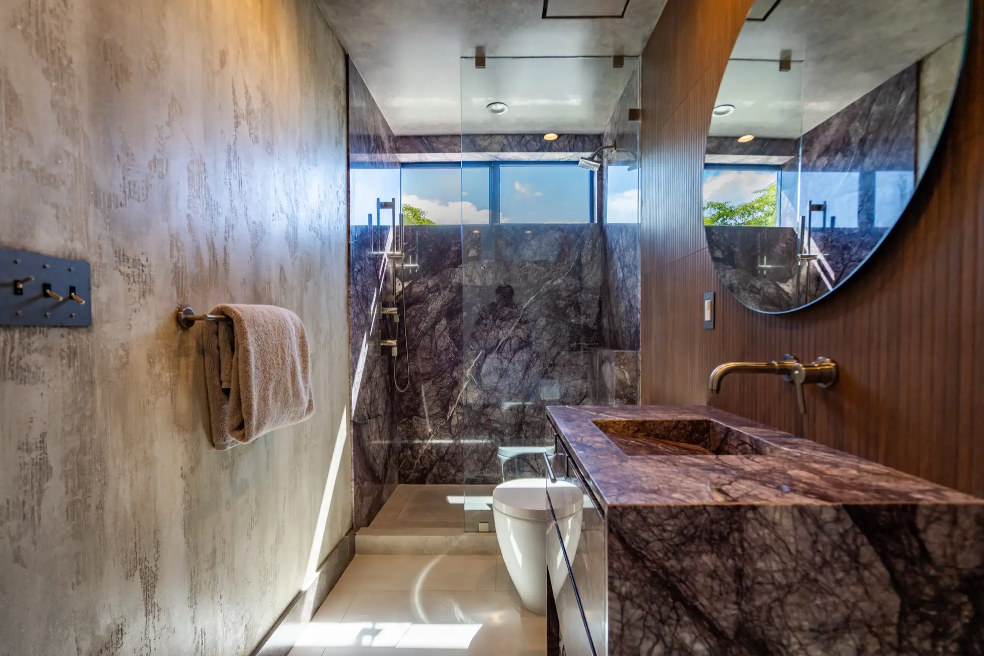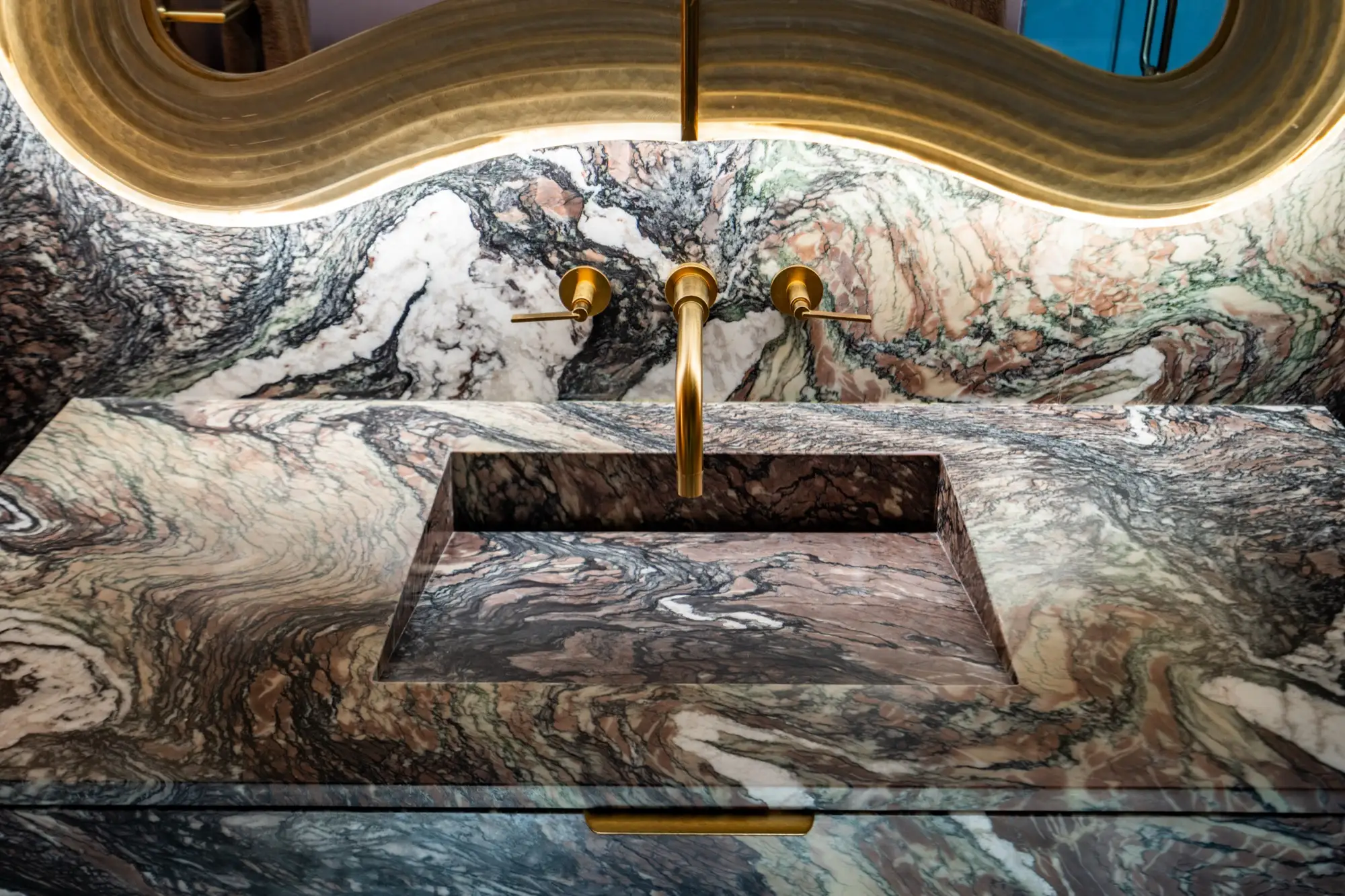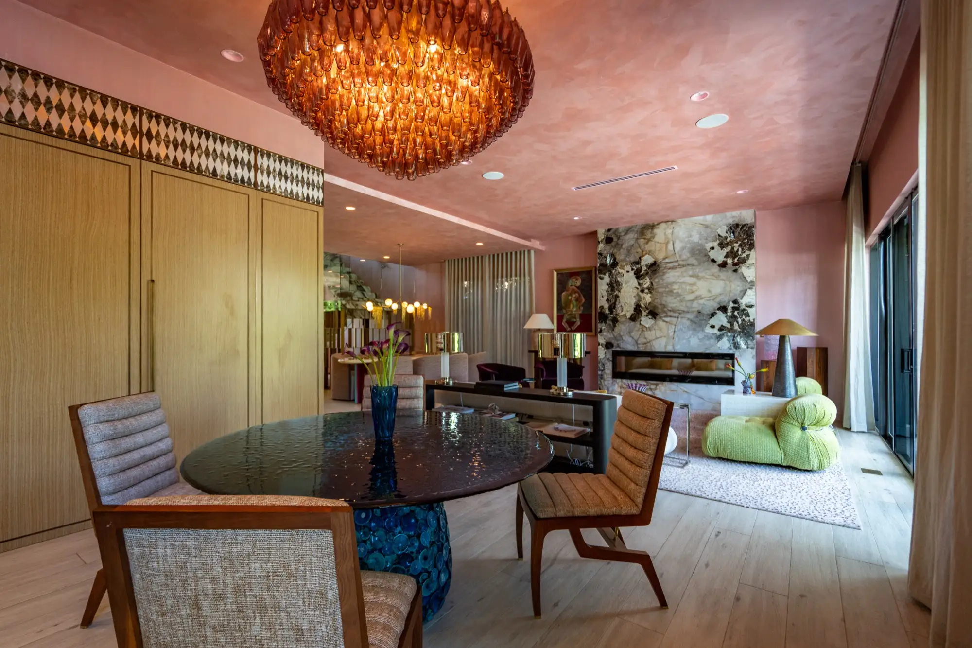 Designer and celebrity chef Travis London’s Miami home is a bow to balanced maximalism. With material selected from our collection, he carefully crafted a design that flows with the veins, hues, and shadows of its natural materials. A counterpoint to restrained design, a rebellious departure from simple white marbles and beige quartzites, his project redefines how natural surfaces integrate into the complexity of interior design. In a celebration of color, texture, and nature, Travis London’s home demonstrates how bold stone can live as the heart of a design, an integral part of a greater organism, working holistically with surrounding elements to bring spaces to life.